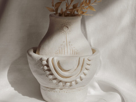 Cântaros de cerâmica feitos à mão, ideais para servir líquidos ou decorar ambientes. Com formas inspiradas na tradição artesanal, essas peças de arte elevam a estética do espaço, trazendo autenticidade.