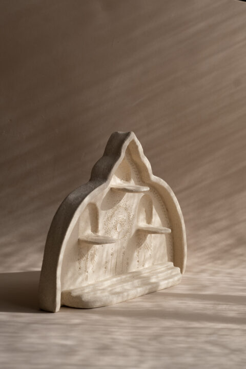 Altar único construído lentamente à mão no meu ateliê, no Porto, Portugal. Após secagem foi queimado em alta temperatura e sem vidrado.