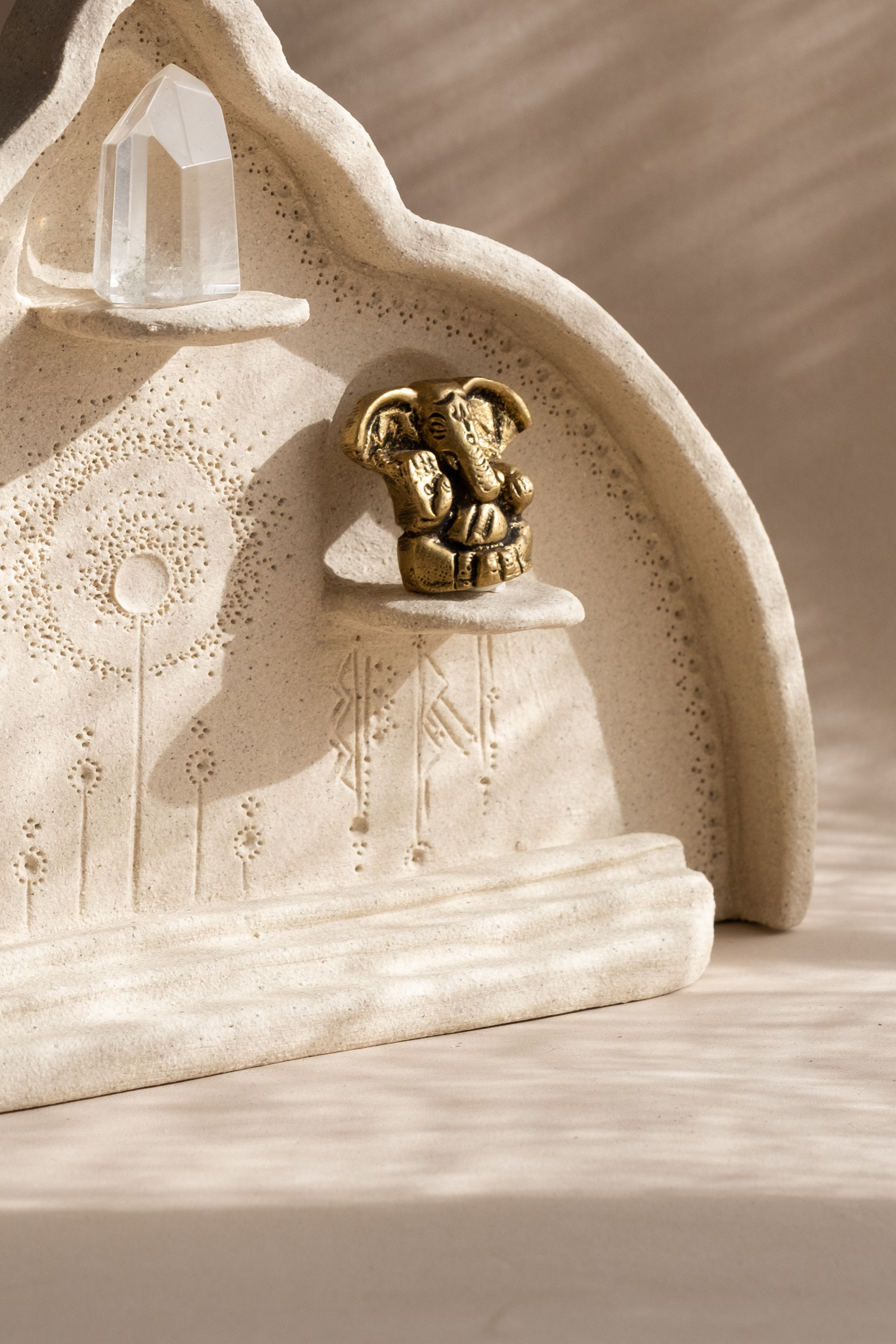 Os cristais e a pequena figura do Ganesha não estão incluídos.