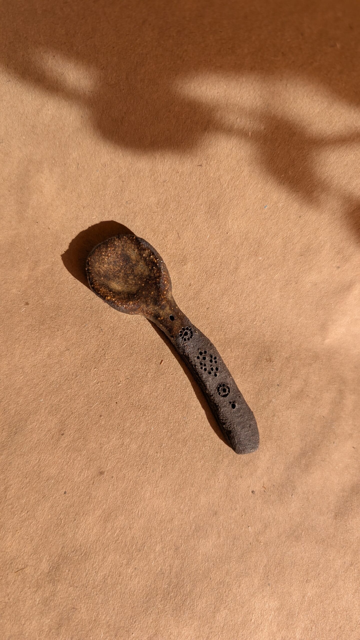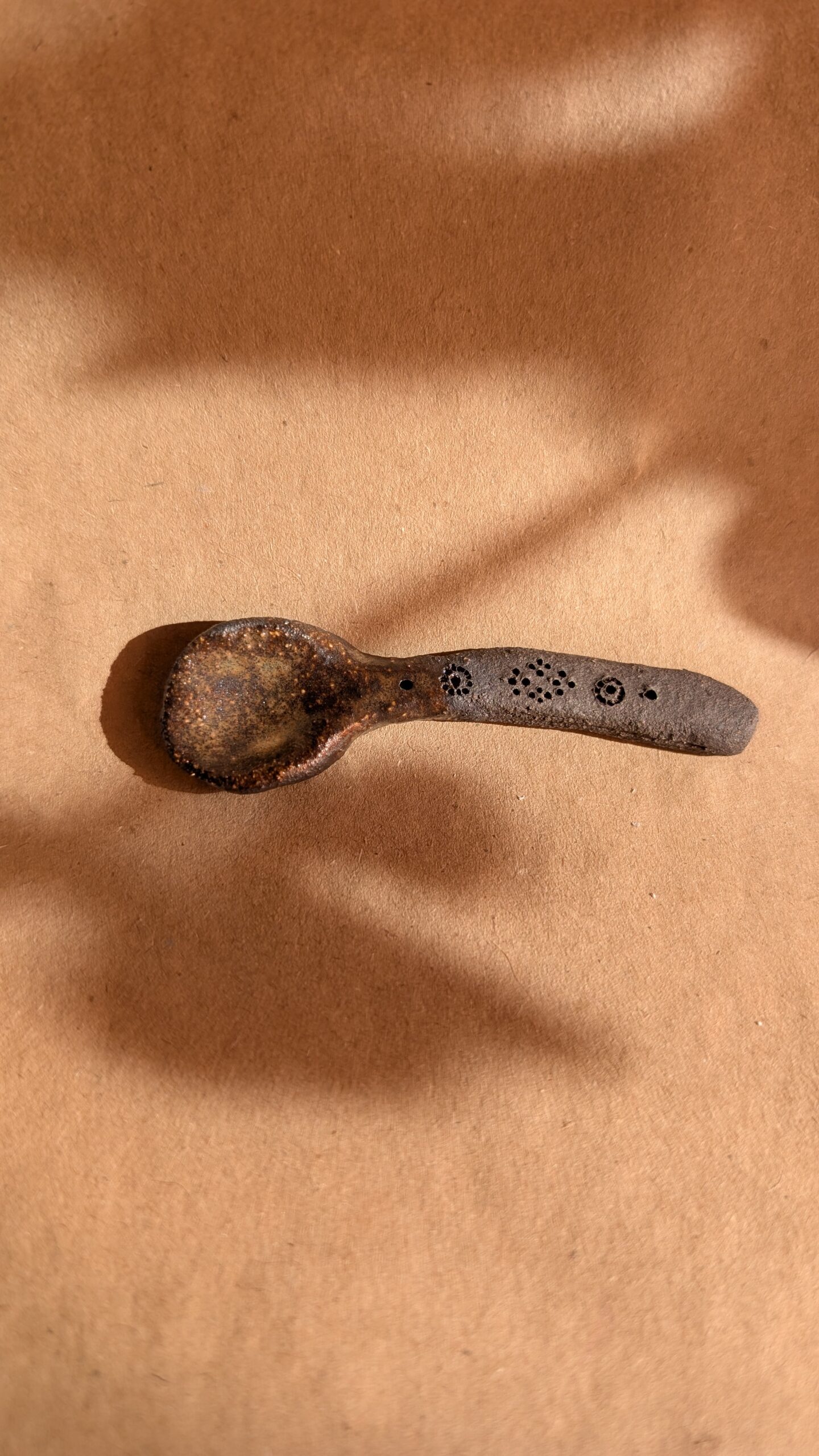Colher de cerâmica feita à mão, moldada de forma intuitiva em cada detalhe. Cada colher é uma peça é única, que revelam o gesto manual e o tempo do processo. Pensada tanto para o uso quotidiano como para ser apreciada como objeto.