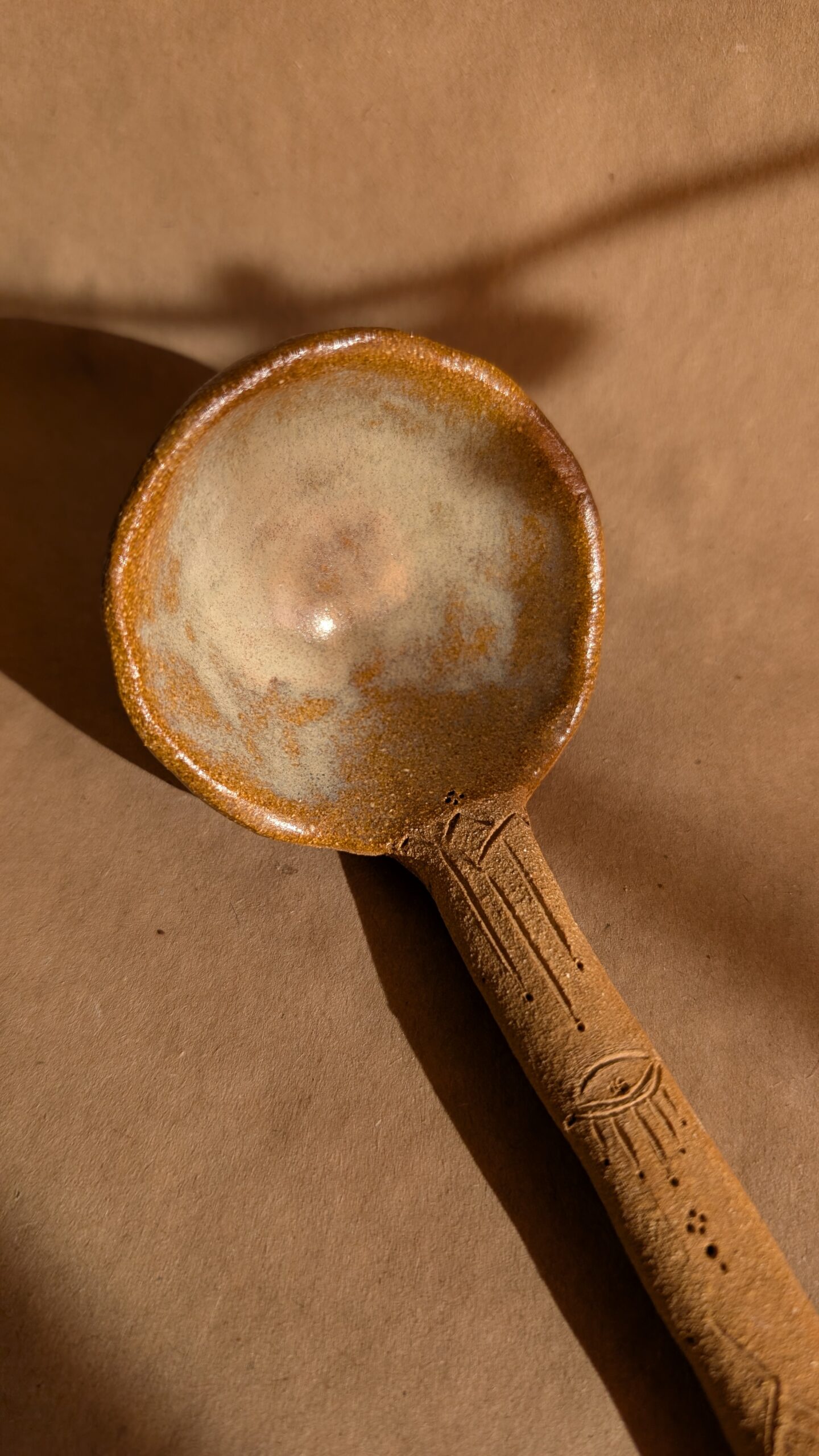Colher de cerâmica feita à mão, moldada de forma intuitiva em cada detalhe. Cada colher é uma peça é única, que revelam o gesto manual e o tempo do processo. Pensada tanto para o uso quotidiano como para ser apreciada como objeto.