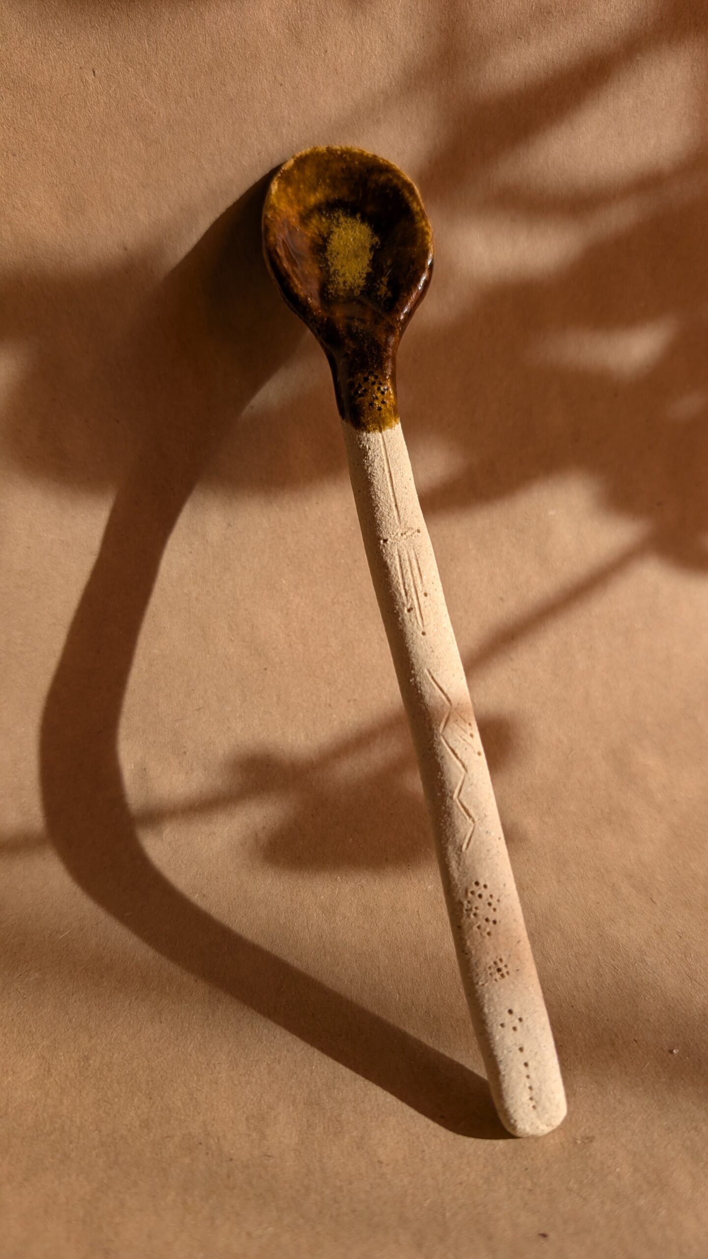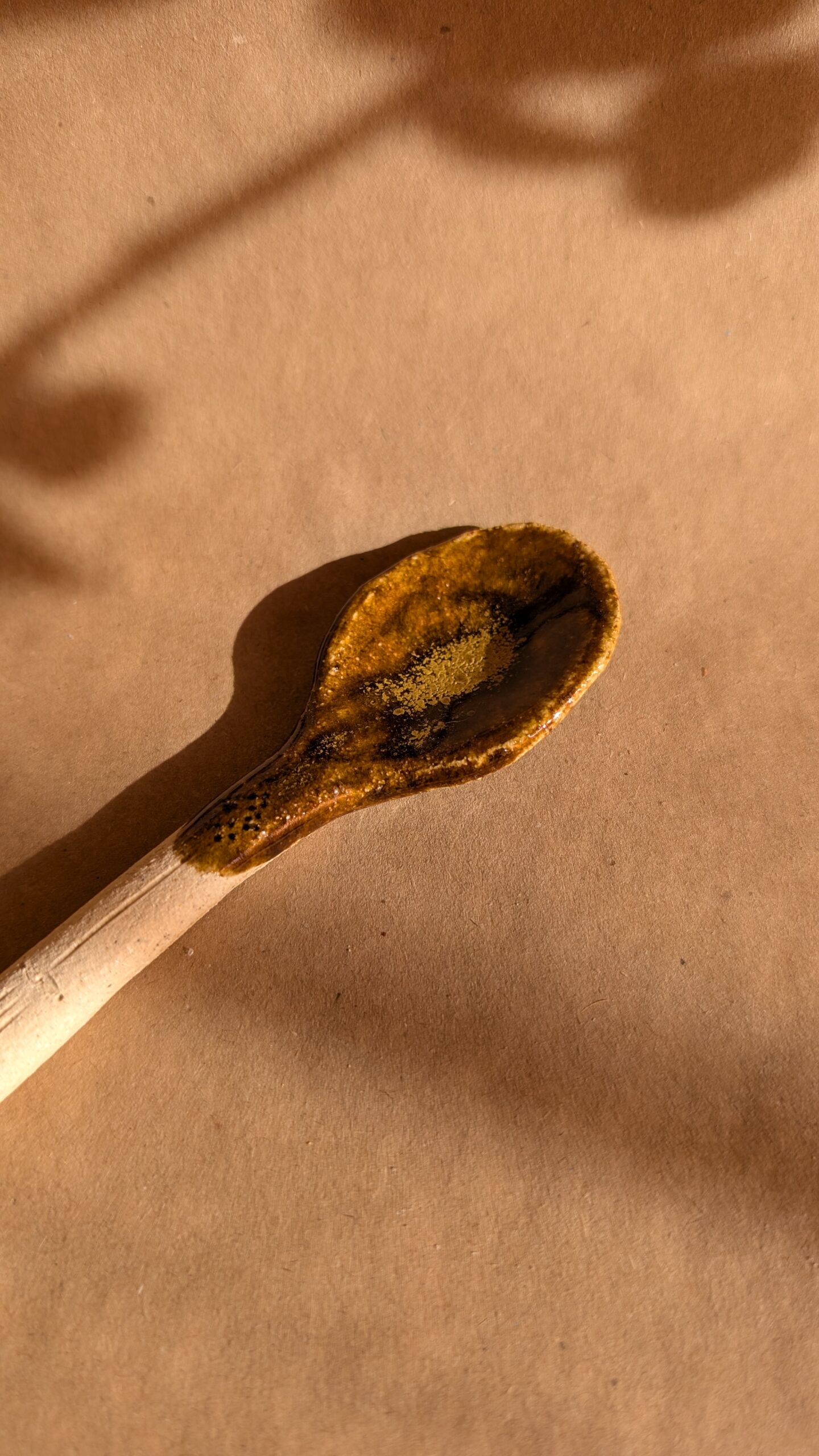 Colher de cerâmica feita à mão, moldada de forma intuitiva em cada detalhe. Cada colher é uma peça é única, que revelam o gesto manual e o tempo do processo. Pensada tanto para o uso quotidiano como para ser apreciada como objeto.