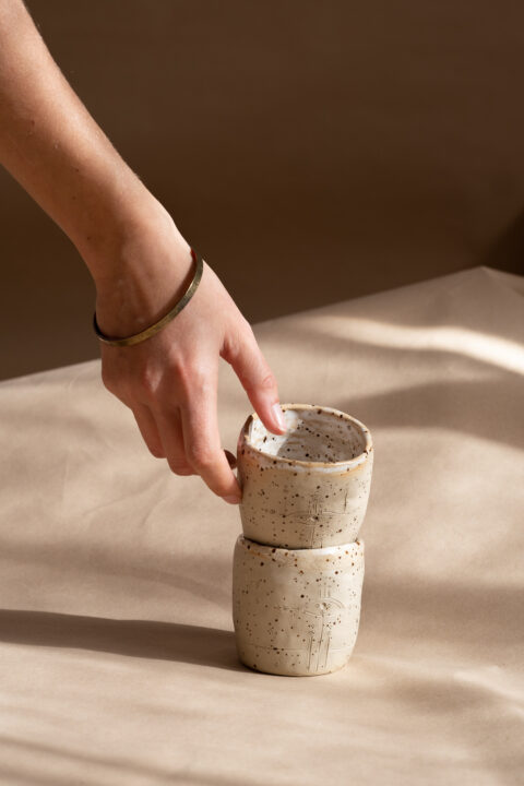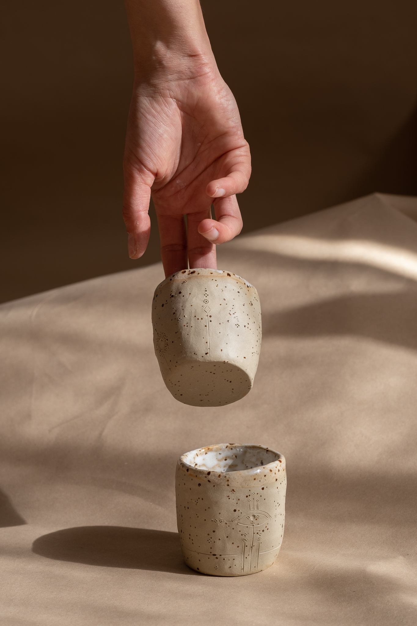 Copo construído lentamente à mão e intenção no meu ateliê, no Porto, norte de Portugal, com a técnica do rolo em argila cor bege.