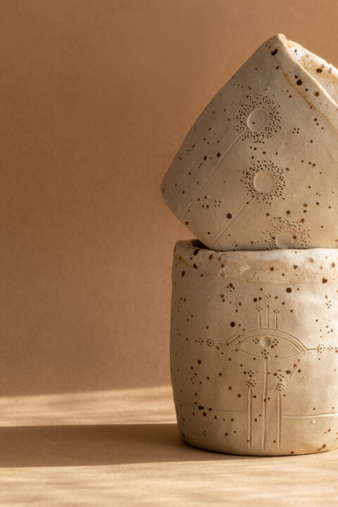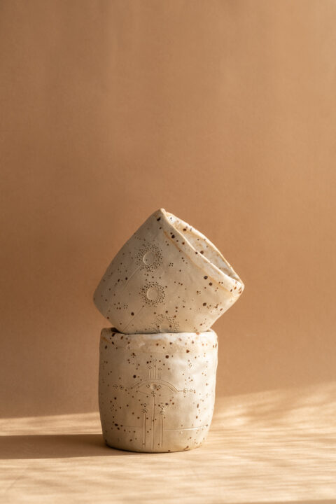 Se viajo no tempo as primeiras memórias que tenho de barro e cerâmica remontam-me à Tunísia. Parte da minha infância e adolescência foi passada nesse país do norte de África. Lembro-me de pensar que as cerâmicas que via eram da cor da paisagem daquele país. A terra, a paisagem, os mercados, o deserto, as vilas construídas em argila são elementos que me inspiram profundamente na criação das minhas peças de cerâmica. Como tal, para honrar essa inspiração e esse primeiro contato, a esta peça dei o nome de um lugar na Tunísia: Douz.
