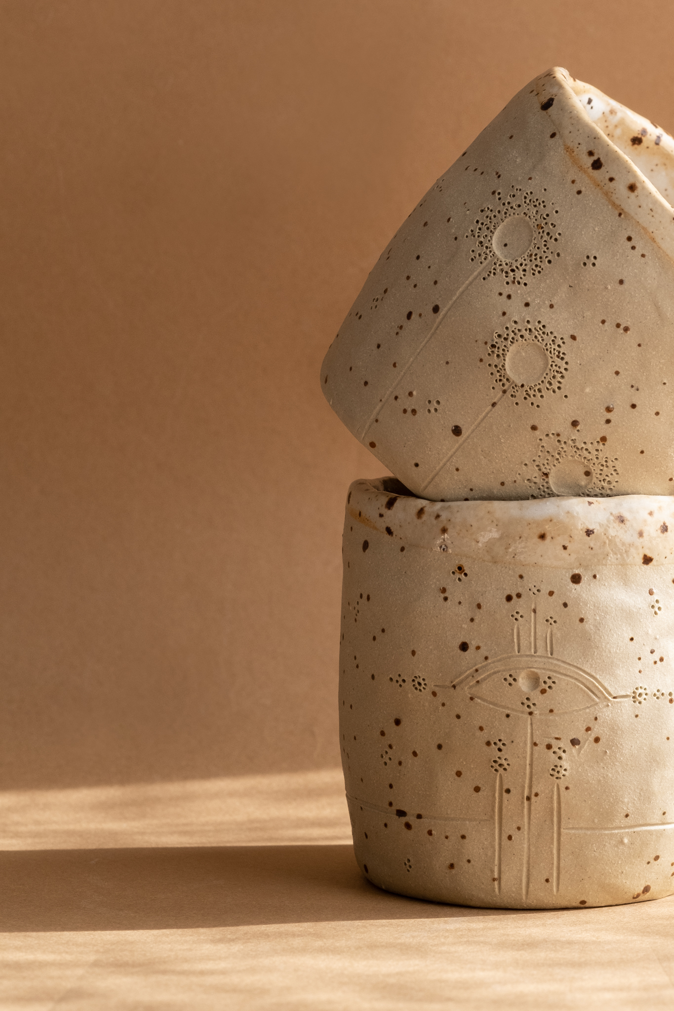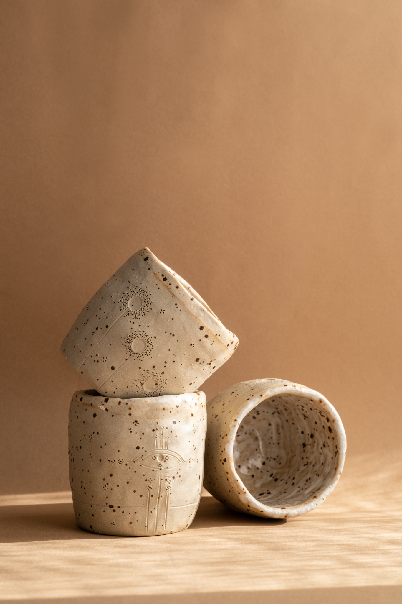 Copo construído lentamente à mão e intenção no meu ateliê, no Porto, norte de Portugal, com a técnica do rolo em argila cor bege.