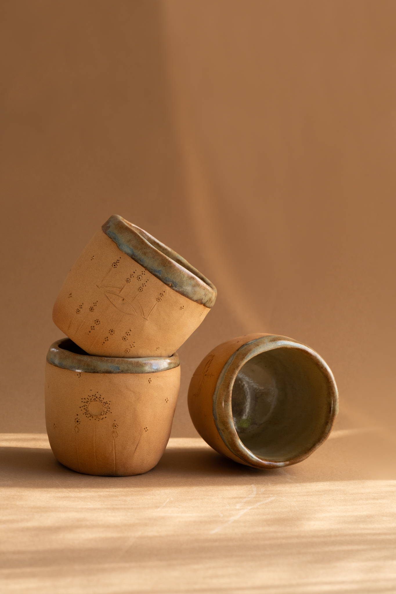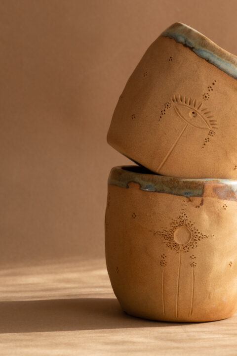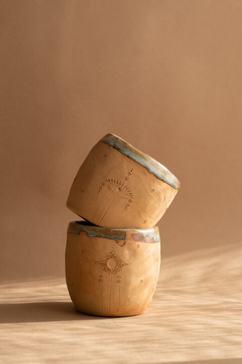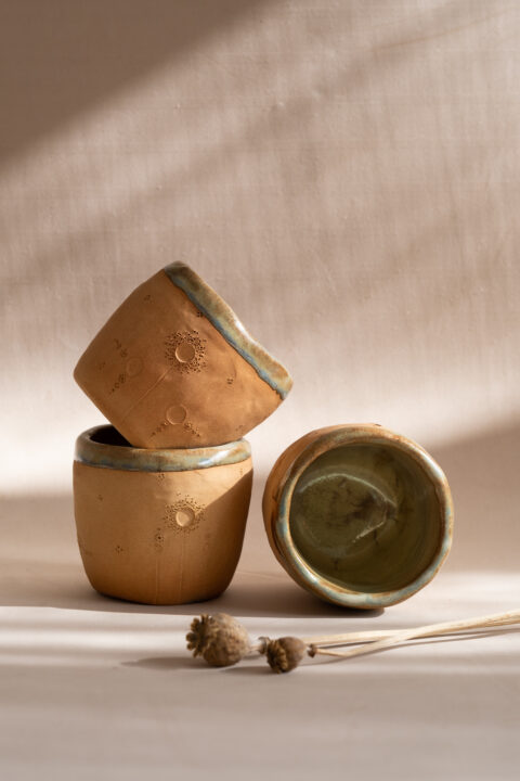 Copo construído lentamente à mão e intenção no meu ateliê no Porto, norte de Portugal. Usei a técnica do rolo em argila cor laranja-terra.