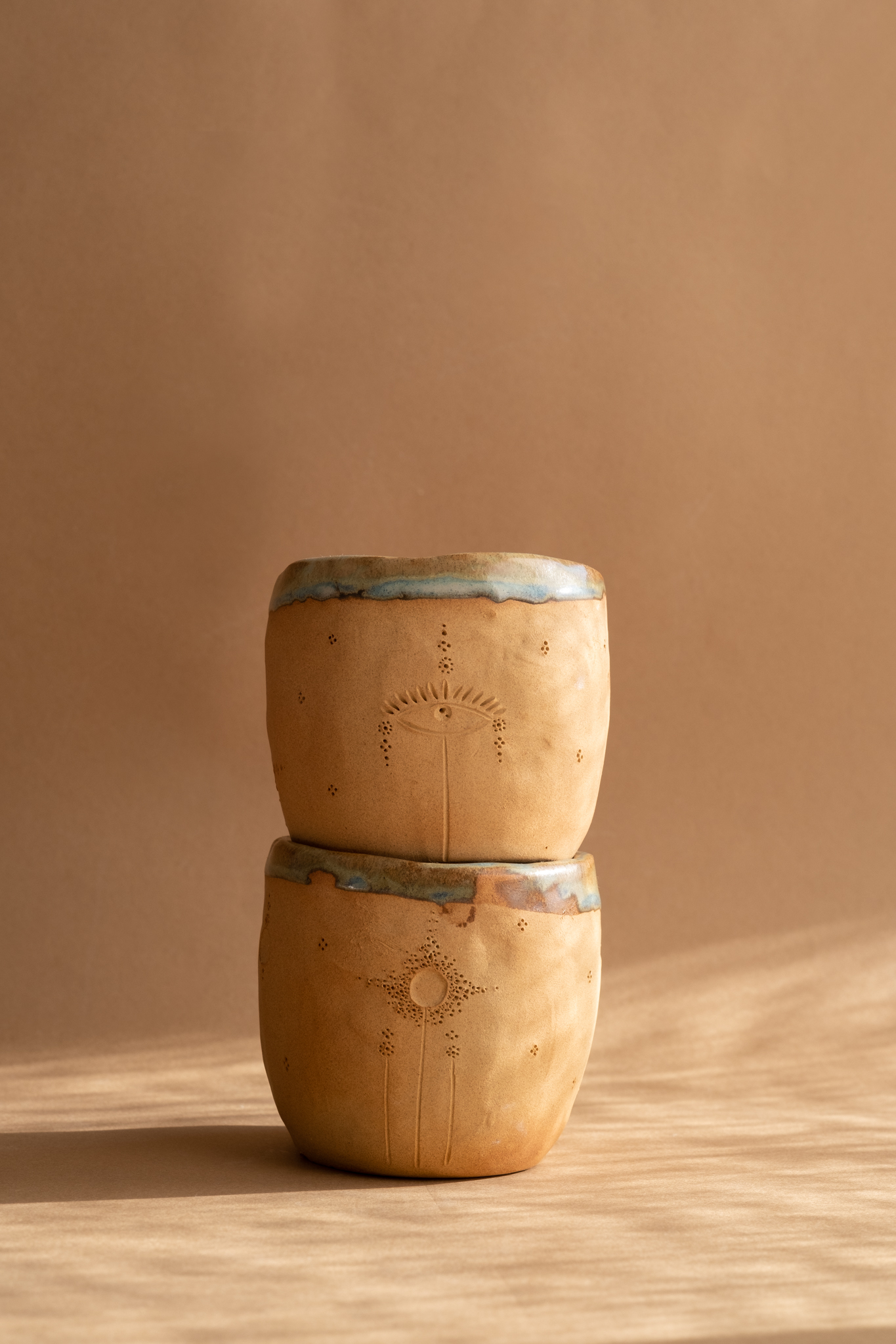 Copo construído lentamente à mão e intenção no meu ateliê no Porto, norte de Portugal. Usei a técnica do rolo em argila cor laranja-terra.