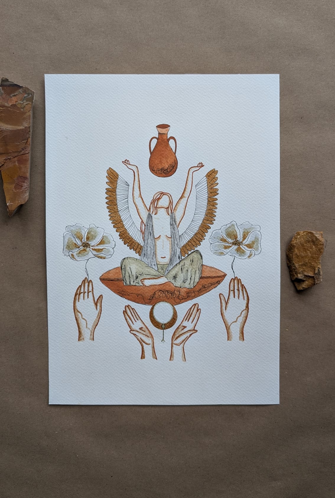 Feito à mão em papel fabriano com aguarela, gouache e nanquin.