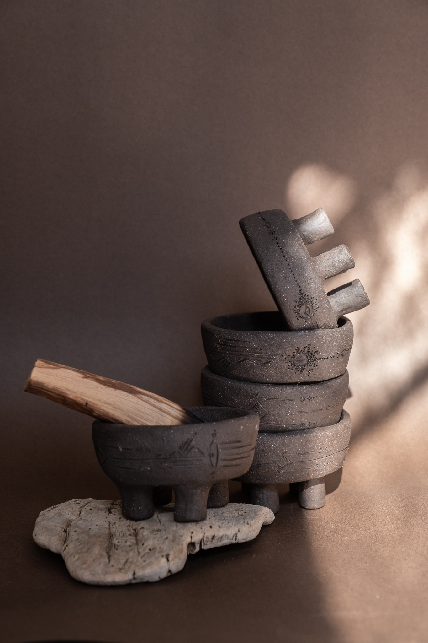 Mais do que um utensílio, o incensário é um portal entre o físico e o espiritual, um convite à contemplação, à purificação e à conexão com o que é invisível. Cada peça carrega a marca do gesto criativo.