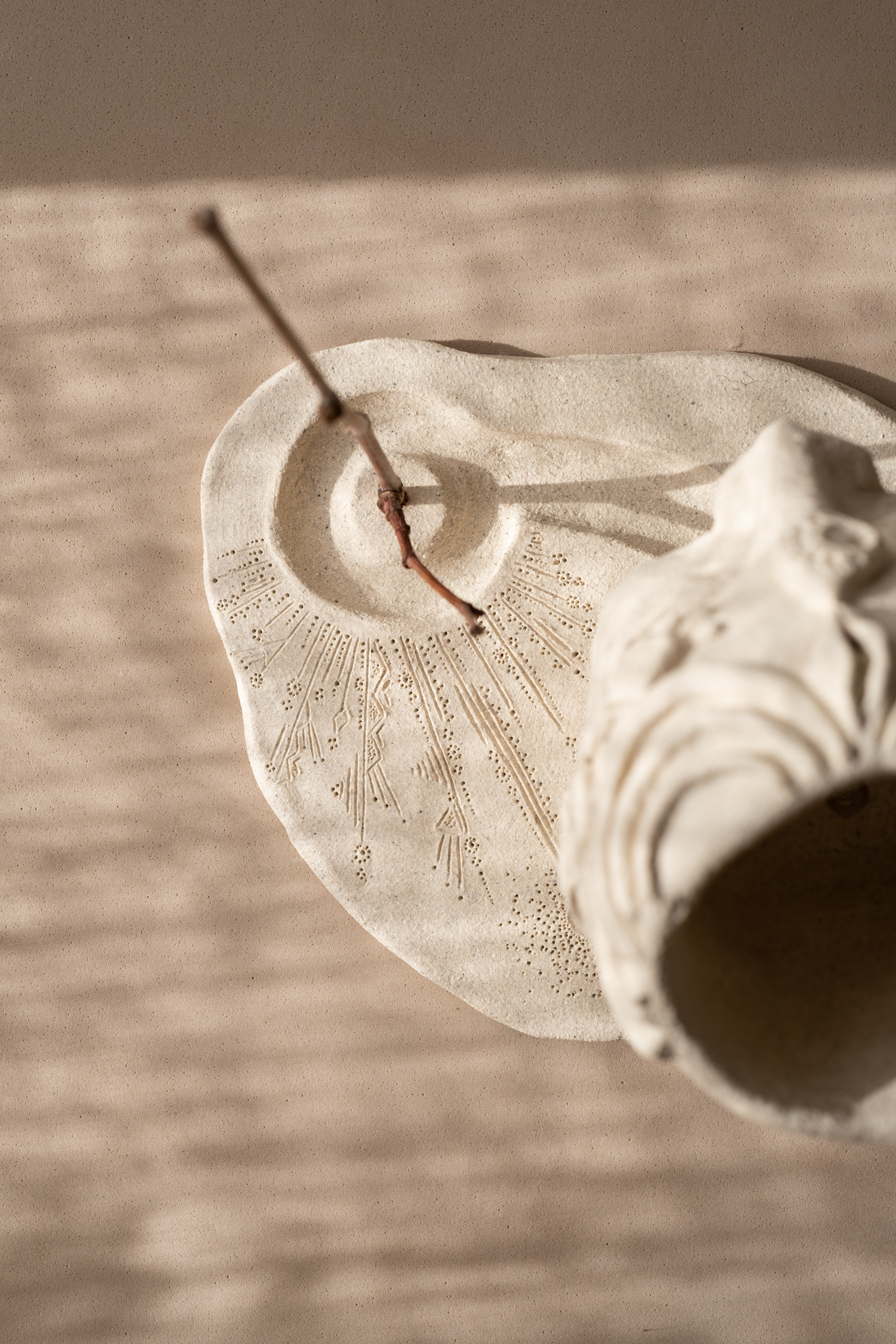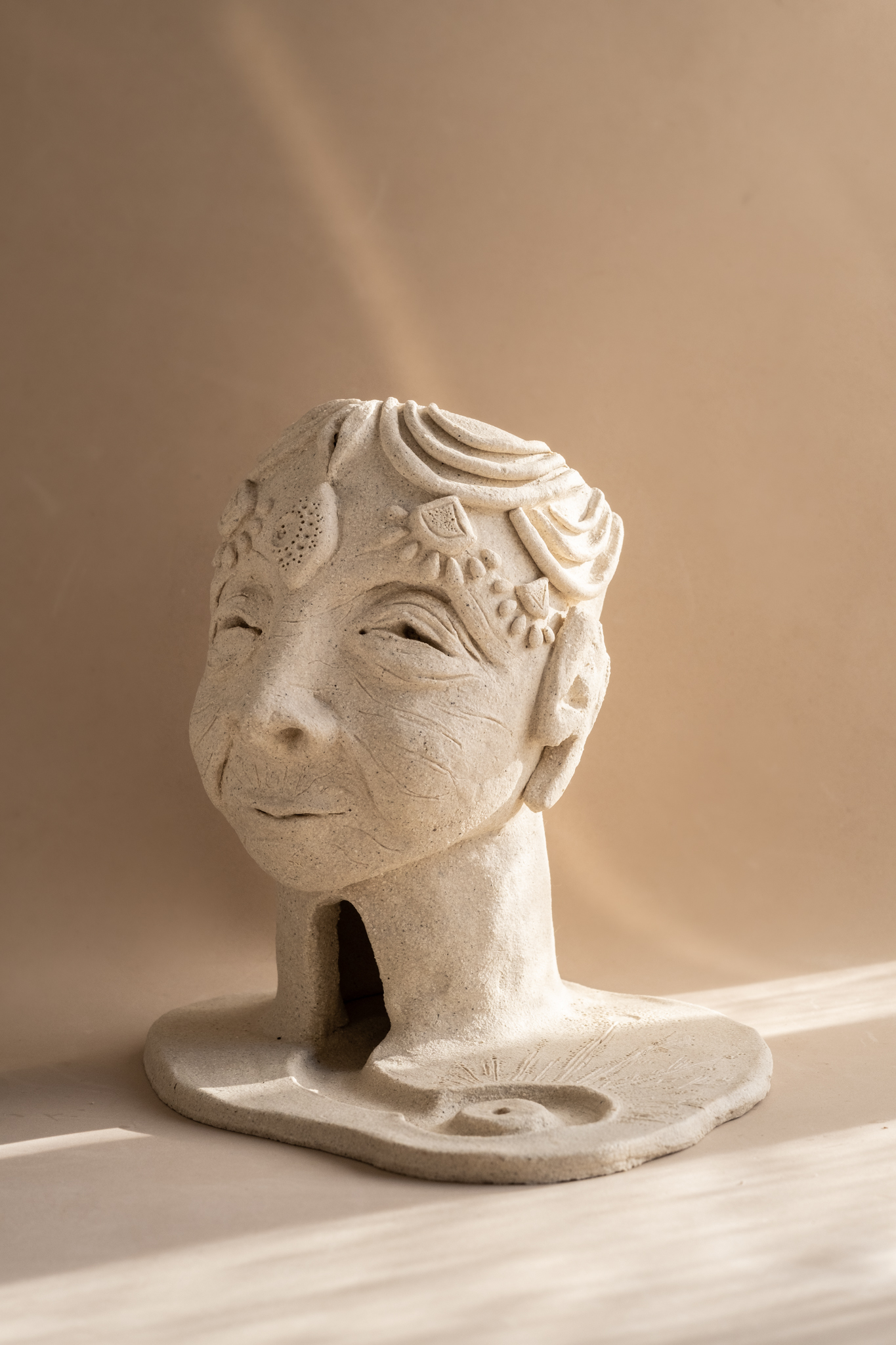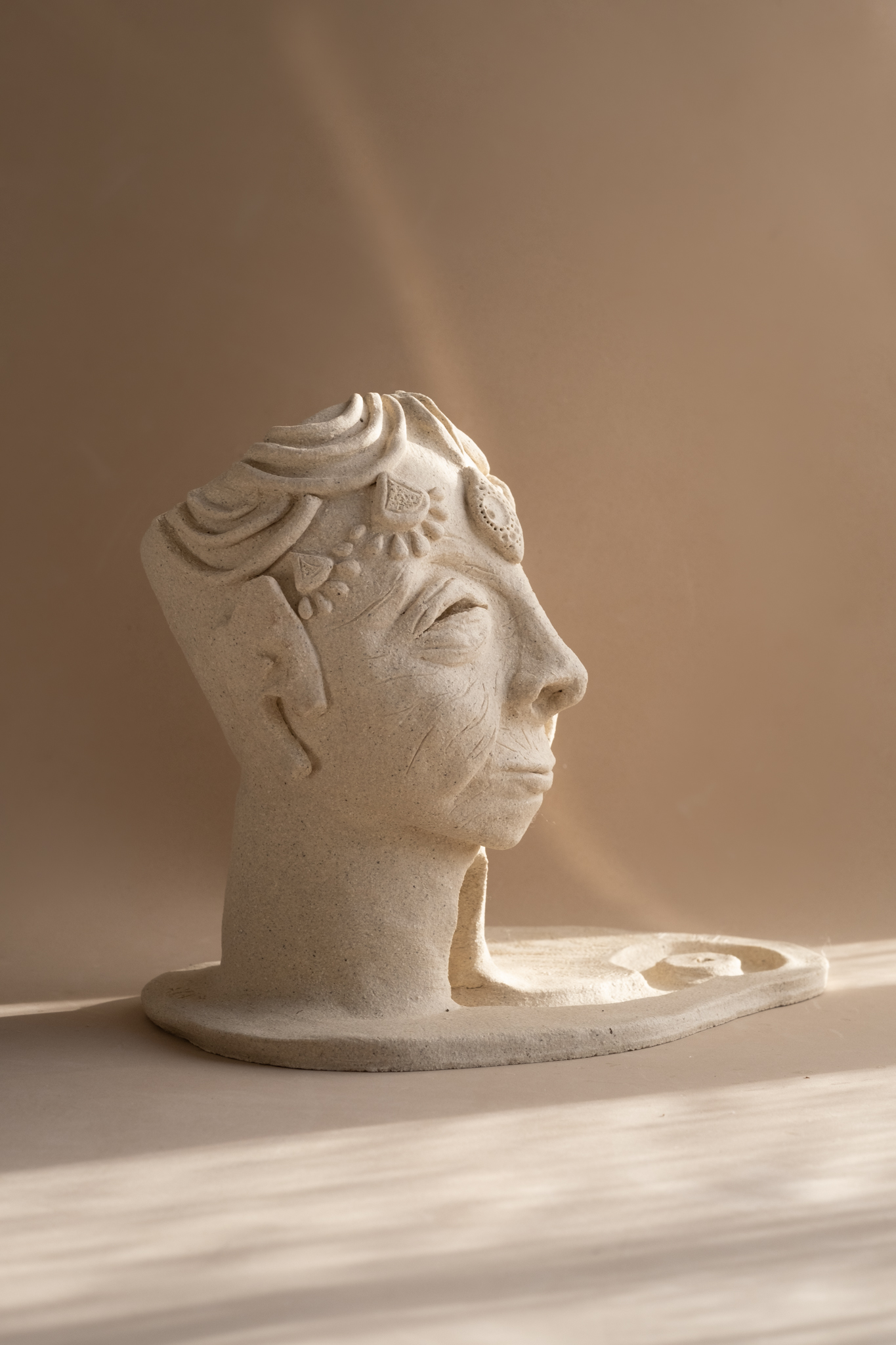 Esta peça foi esculpida lentamente à mão e intenção no meu ateliê, no Porto, norte de Portugal, em barro de cor branco durante vários dias.